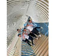 ゲレンデが完成すると、新しく寄付いただいたそりを使って築山を上手に滑ります。