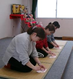 ひな人形の前で、ハイチーズ!!楽しい一日になりました。