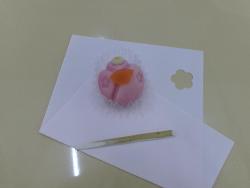 少し苦いお抹茶をいただく前に、甘いお菓子をいただきます。今年も雛様の可愛い和菓子をいただきました。