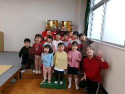 5歳児さん1名と昨日入園した3歳児さんをお祝いしました。