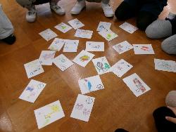 さすが1年生!!かるたの言葉やすごろくのマス目のワードも考え、楽しいものに。