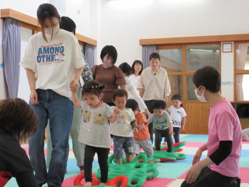 講師に日本3B体操協会公認指導者の阿野有子さんをお迎えし、就園前の子どもと保護者9組18人が参加しました。