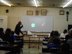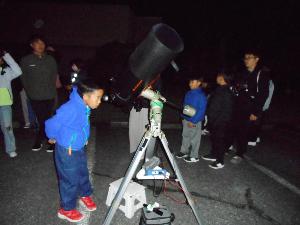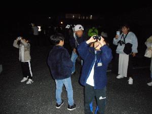猪名川天文台運営委員会の方に講師をお願いして、天体望遠鏡や、今回は初めて各自が双眼鏡を使用し『月』や『レモン彗星』を観てみました。