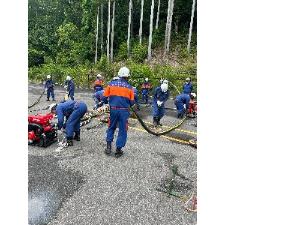 今回の訓練は、各分団車両に積載されている可搬ポンプのエンジンの始動から放水までの動作確認や、三角巾を使用した応急処置訓練を行いました。