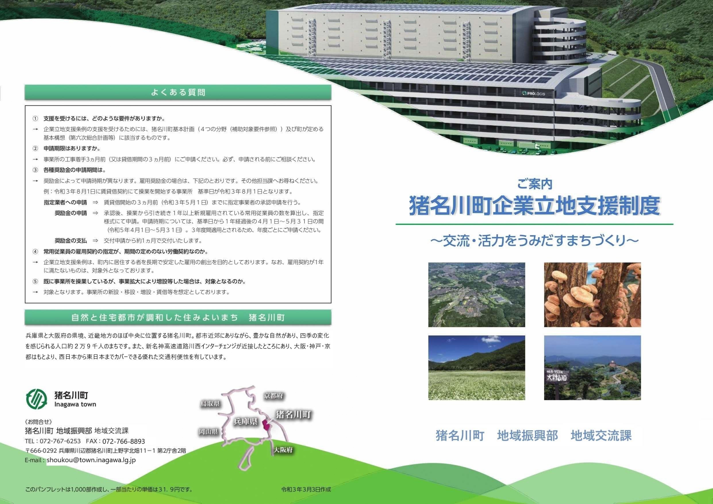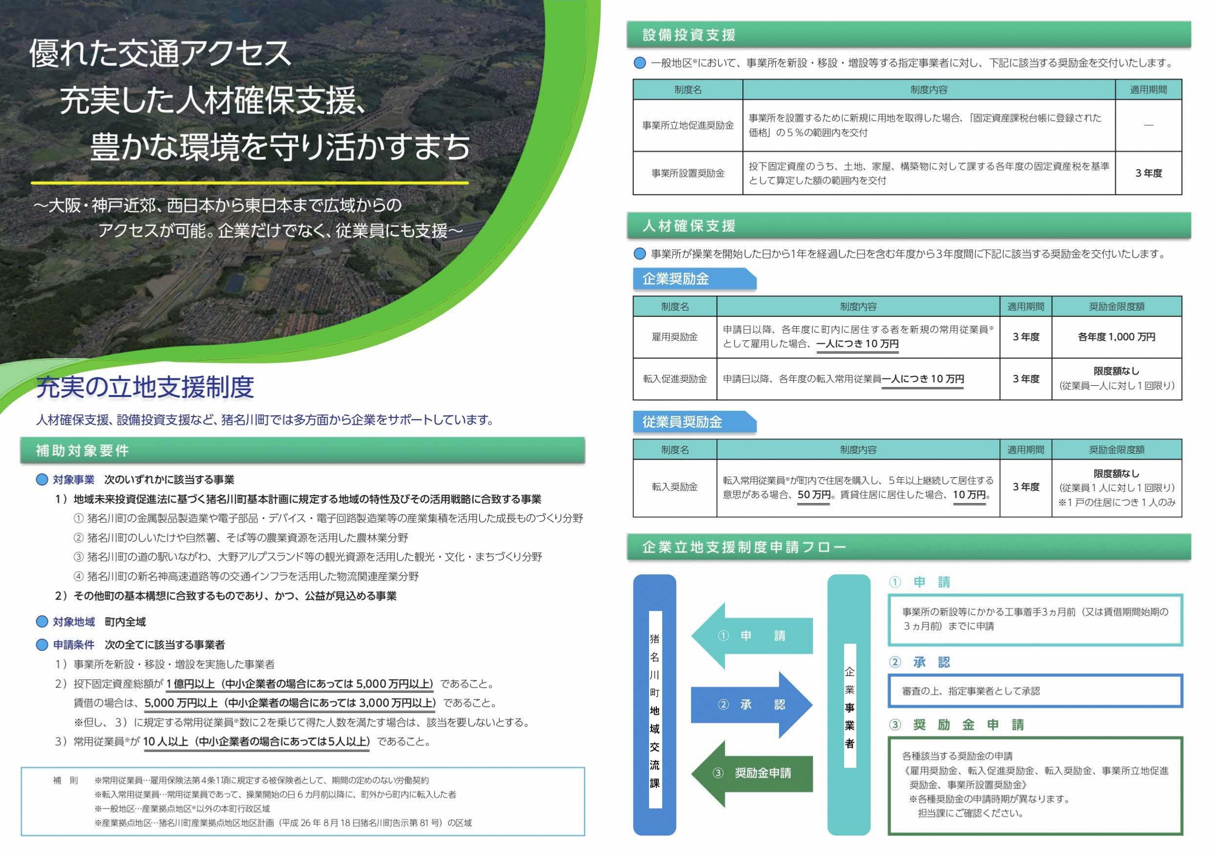 猪名川町では、産業の振興、新規産業導入の促進、町民の雇用拡大などを目的として、企業立地支援制度を用意しています。